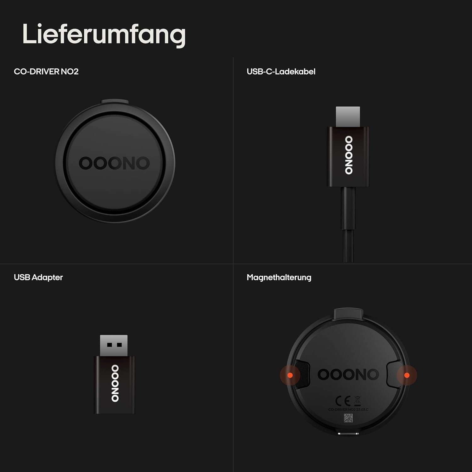 OOONO CO-Driver NO2 [NUEVO modelo 2024] – CO-Driver optimizado para el coche – Advierte sobre cámaras de velocidad y puntos peligrosos – Recargable – Indicador LED – Compatible con CarPlay y Android Auto